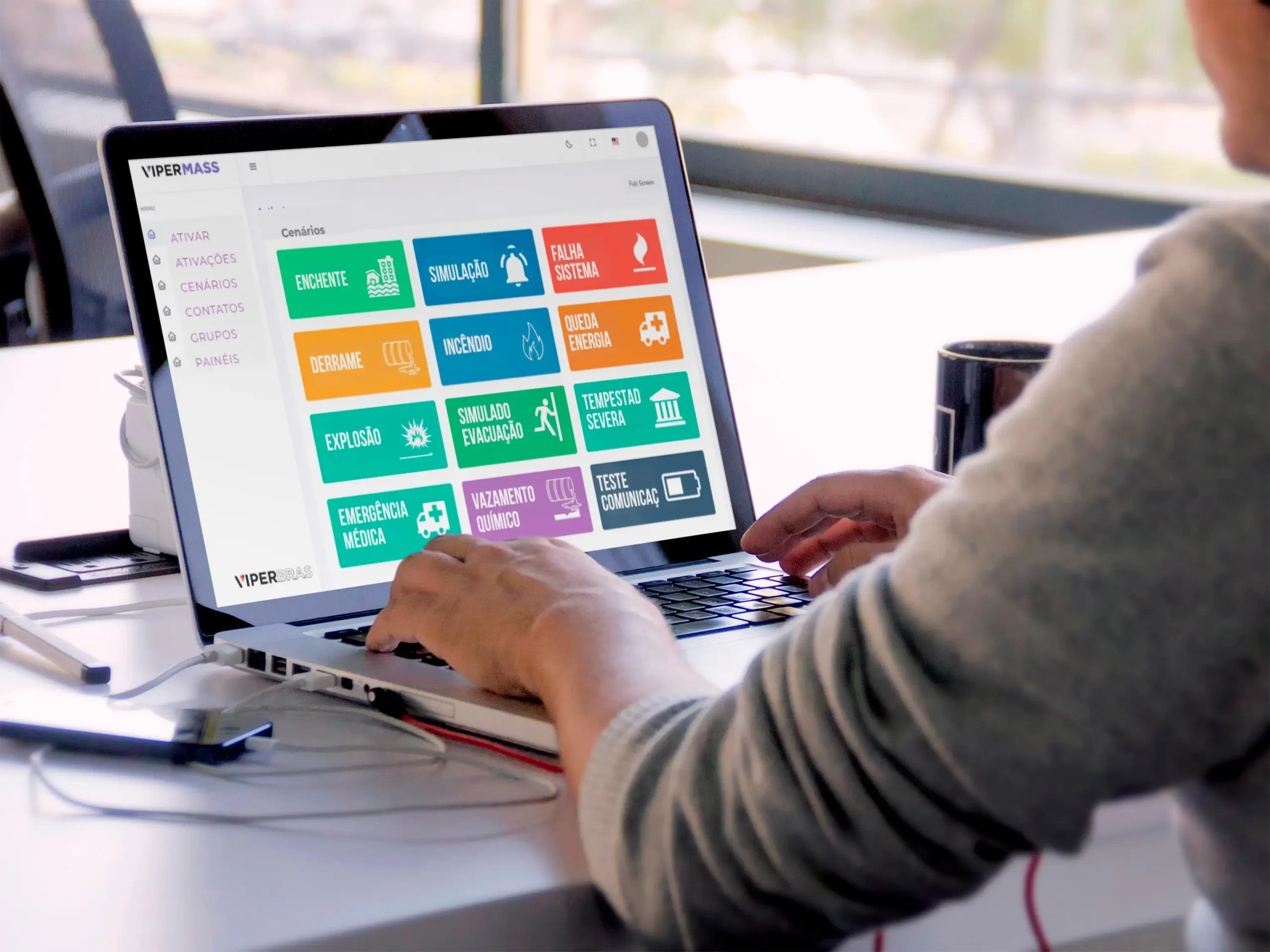 Projetado para que as organizações possam manter a continuidade de seus negócios em situações de crise, o VIPER MASS envia mensagens-chave e simultâneas por múltiplos canais (WhatsApp, SMS, chamadas de voz e e-mail) para milhares de usuários, garantindo que a informação correta chegue às pessoas certas em segundos.
